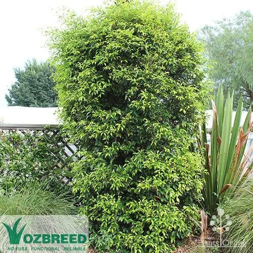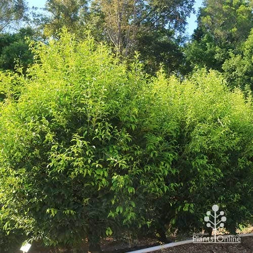 APPEARANCE : The parent species is a tall rainforest tree with white fluffy flowers; . Sublime is a bright lime-green form, leafy all down the trunk, which rarely produces berries. Psyllid resistant.